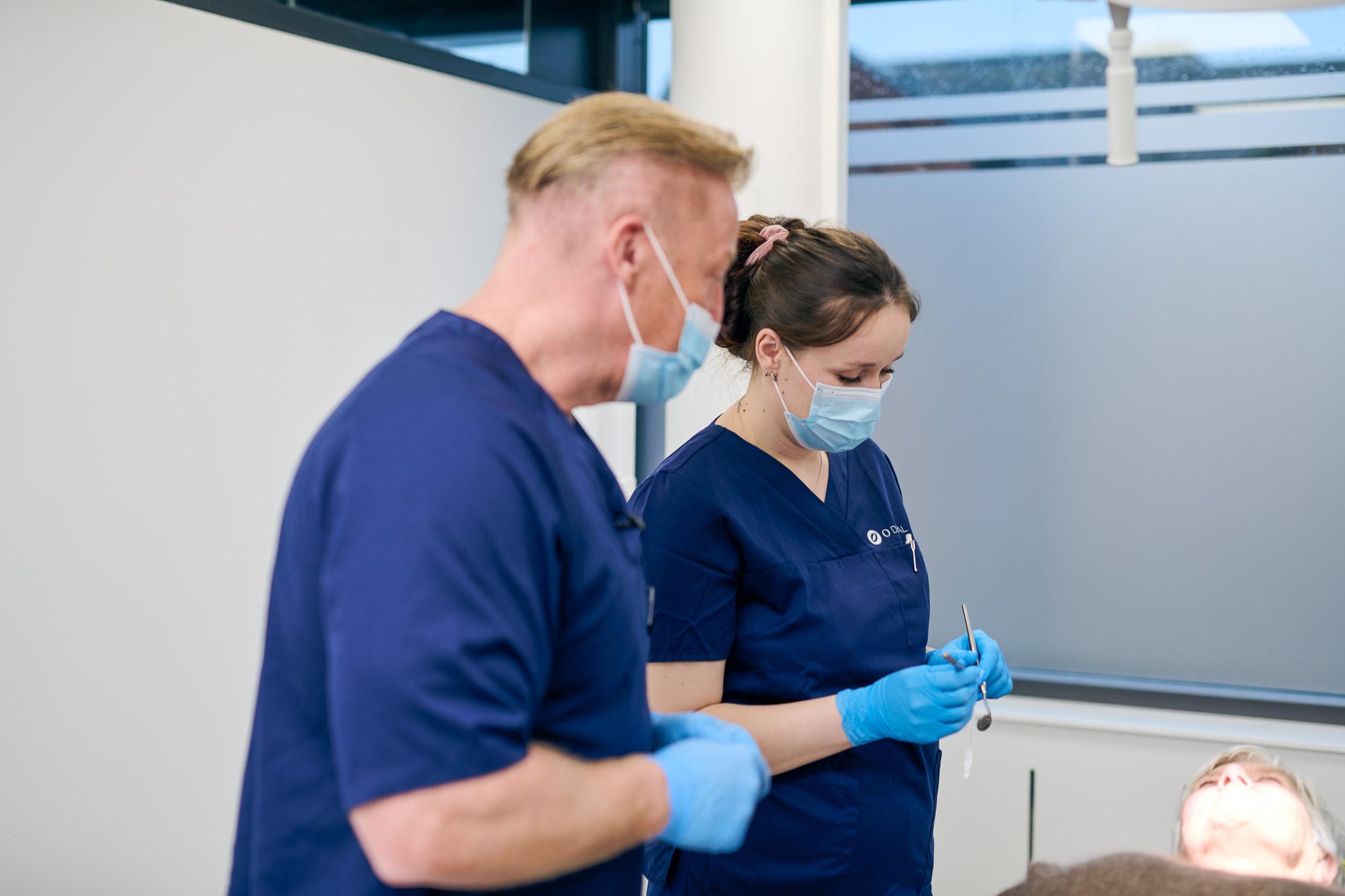 Mange patienter vil ofte, når de kommer hjem efter operationen, skylle munden og spytte, fordi der er en dårlig smag i munden. Netop dette skal man undlade for at sikre, at såret kan nå at blive stærkt nok til at modstå mundens påvirkninger. Sammenbid på gazekompres er det bedste, man kan gøre de første par timer, og herefter skal man blot give såret ro og følge de givne anvisninger, herunder f.eks. brug af sodavandsis, som man har fået fra vores kirurgiske assistenter.