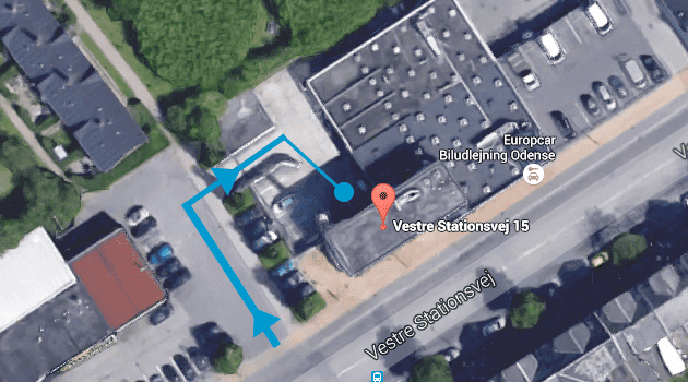 Der er gratis parkering i gården, bag klinikken, lige ved indgangen
